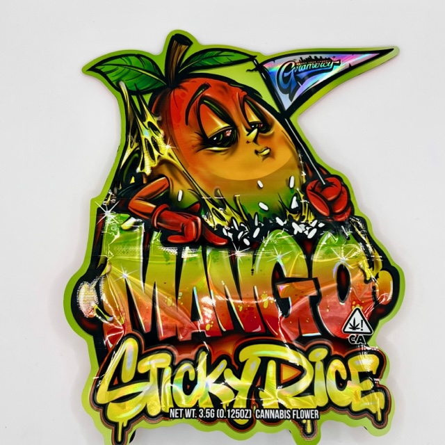 Mango Sticky Rice is a hybrid strain that is named after the traditional Thai dessert. It has a sweet and tropical aroma and flavor with notes of mango, coconut, and rice. Genetics: Mango Sticky Rice is a cross between a specially selected OG Kush phenotype (known for its mango undertones) and a sweet and very sticky Gelato 33 strain.